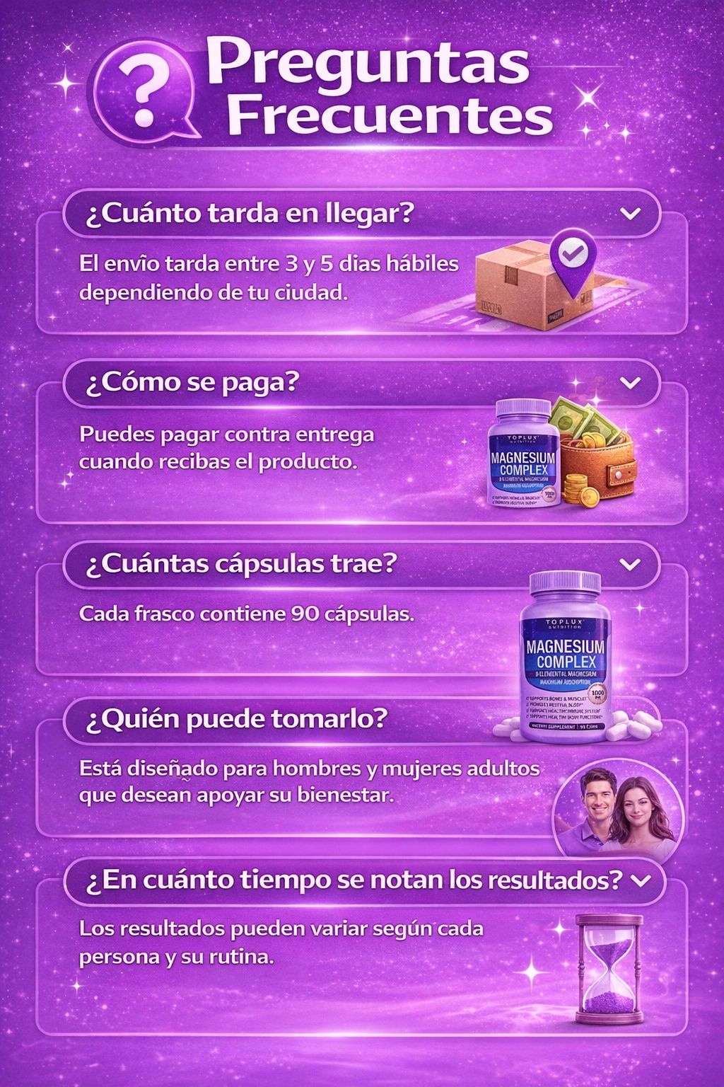 “Desde que tomo Magnesium Complex ya no tengo calambres en las noches. Me ha ayudado mucho a descansar mejor.”